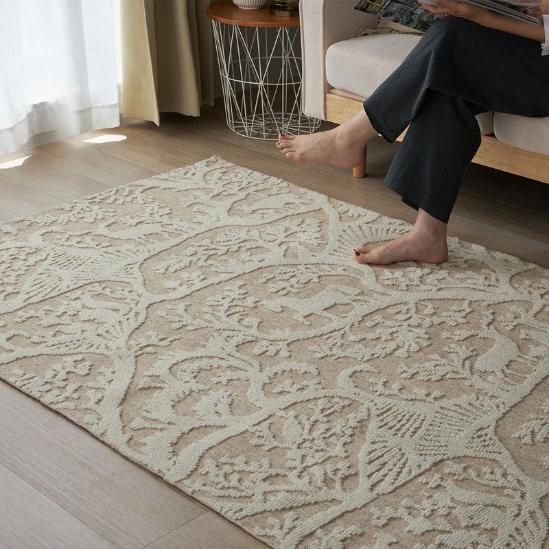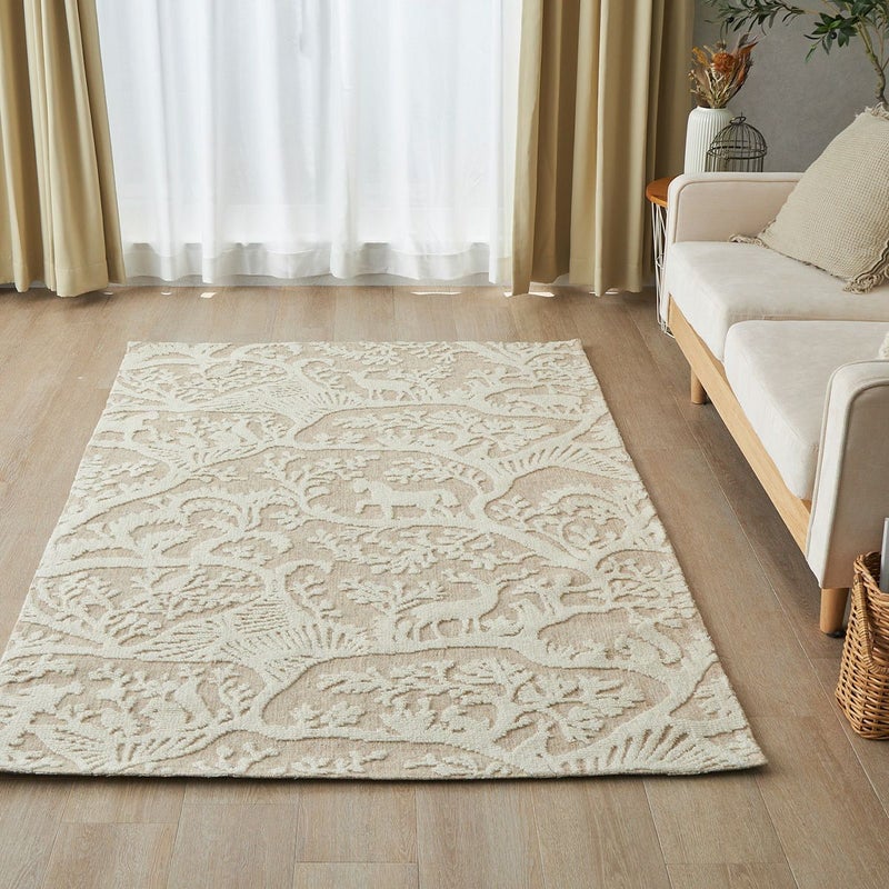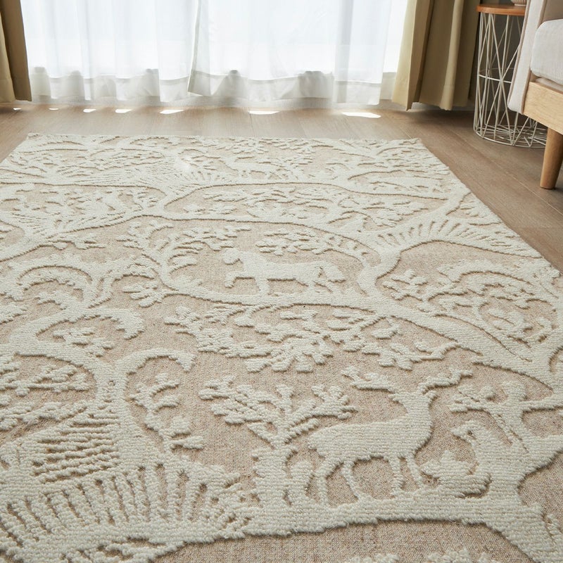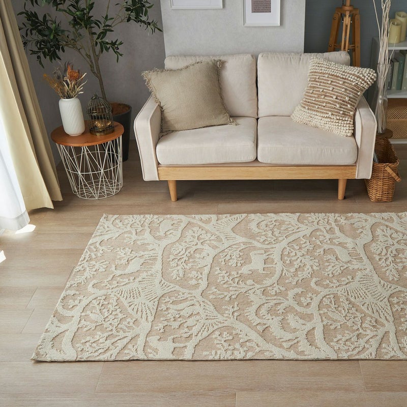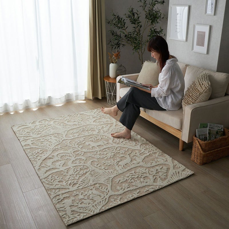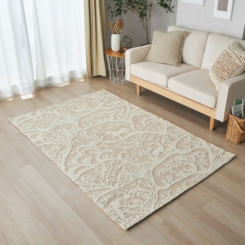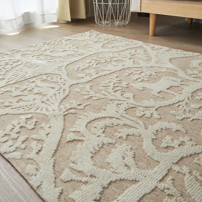 植物や動物をあしらった織り模様がおしゃれ一年中快適に過ごせるウールラグ