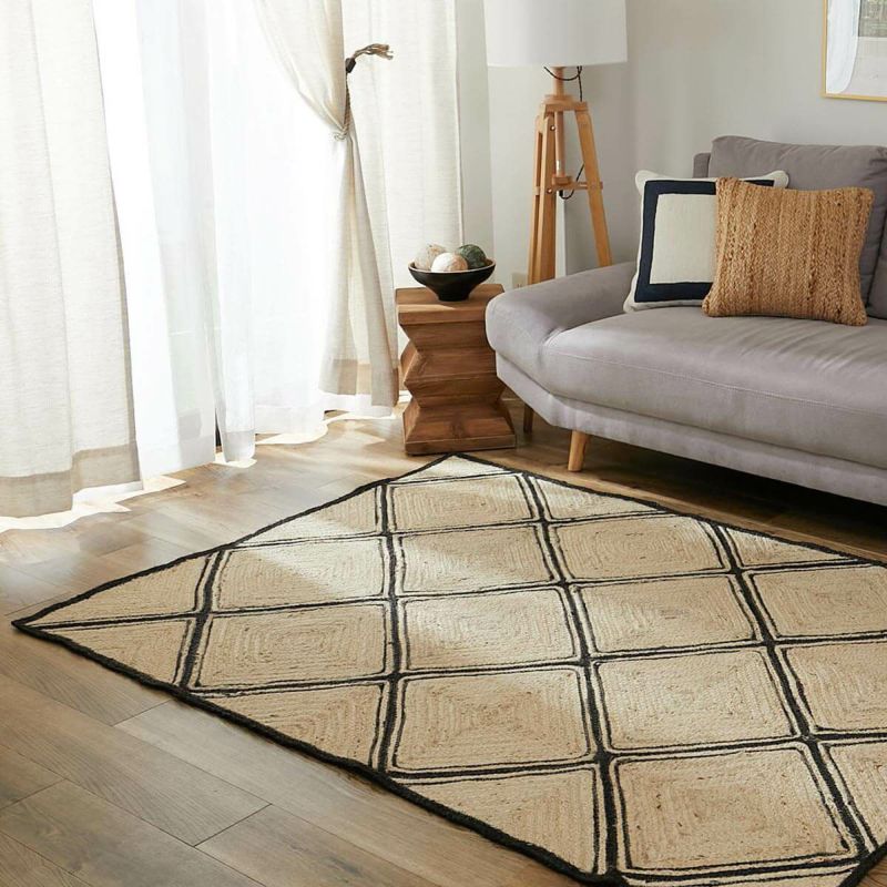ブラックラインがお洒落なジュート100%ラグ エストリア