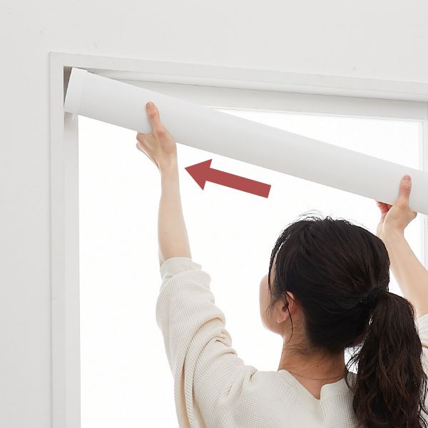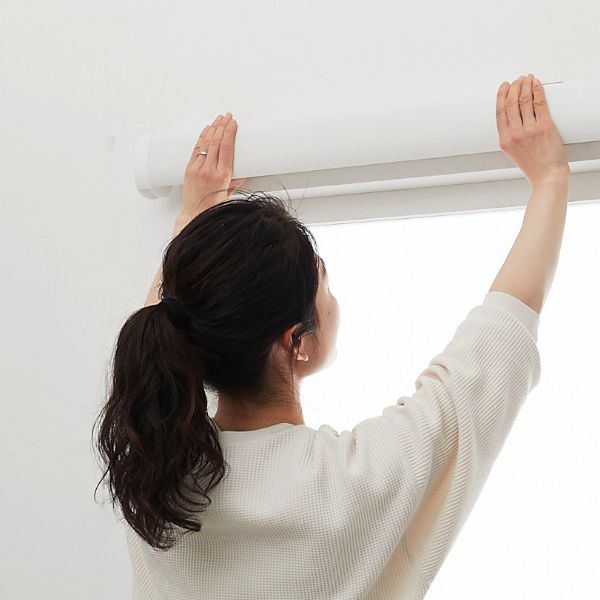 穴を開けずに取り付け可能な立体調光ロールスクリーン。賃貸やネジ穴を開けられない場所への設置におすすめです。